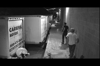 We finish shooting the first location and move to a warehouse dock area across the street and right behind a big clothing store. This area used to have a fair amount of drug and vagrant activity, but has recently been cleaned up by constant pressure from the Edmonds Washington Police Department. We had the permission of the warehouse owners to film and I made sure I called the Edmonds PD a week before the shoot, to warn them that we would be filming in the area and be yelling and using blank firing hand guns. The reason I had the foresight to call the EPD was that several weeks prior, during a shoot just a few blocks from the warehouse location, in an abandon house we had rented for the weekend, an area neighbor had called the EPD for what they thought was "domestic violence." Five guys kidnapping a mother and terrorizing two girls in an abandon house. Now that's domestic violence! Anyway I knew if we were shooting guns in the area someone would call it in. I talked directly with the Assistant Chief and a memo was sent out to dispatch and the various Police Departments.