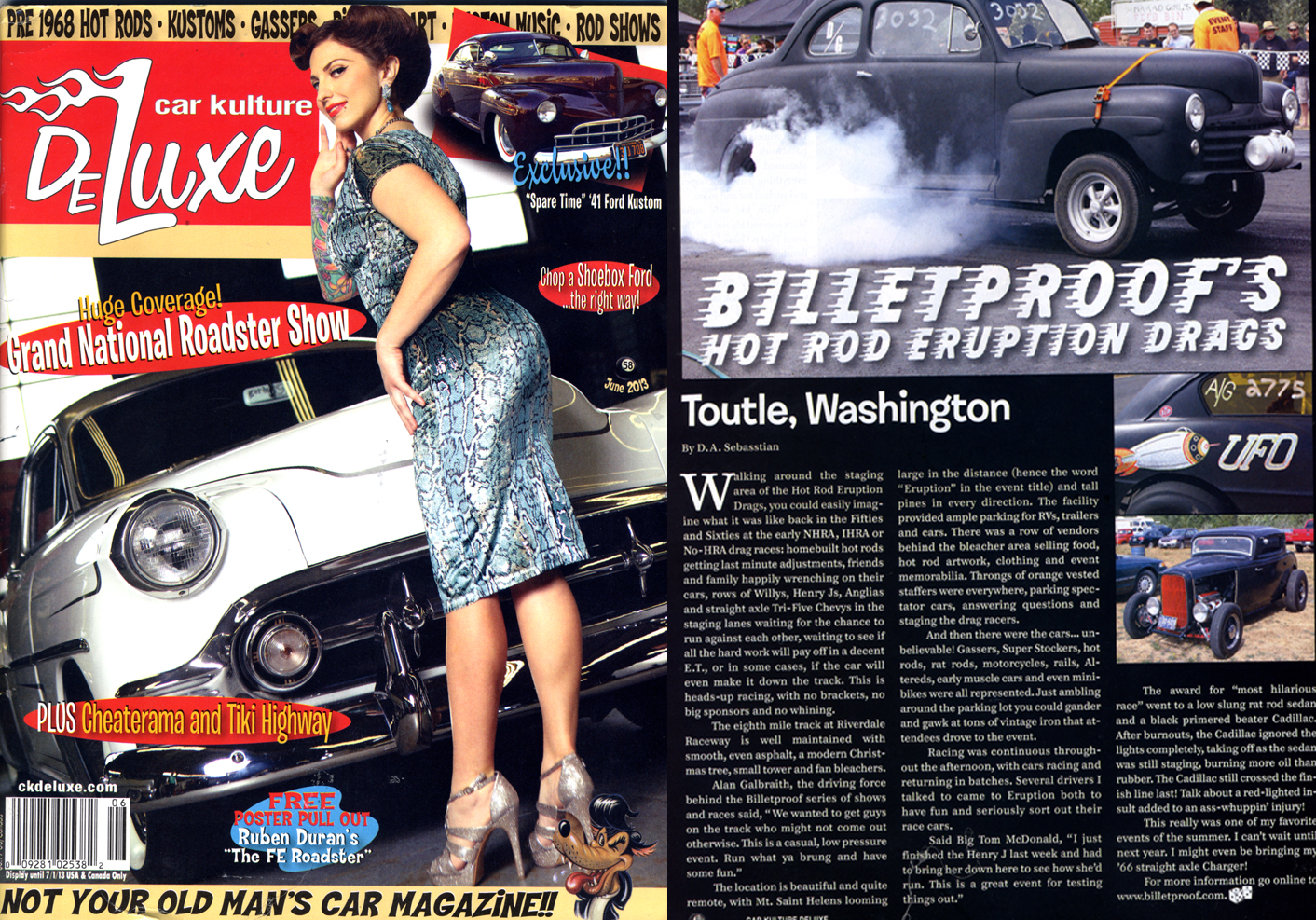 My second photographer credit came out in the new Car Kulture Deluxe Magazine. This was an article I wrote and shot about the Billetproof Eruption Drags in Toutle, WA. When I opened my P.O. Box door I had to smile, was my article in there? I thumbed through the pages eagerly- and then when I saw it, I had to call my wife all excited. Life's little pleasures.Tuesday, April 30, 2013